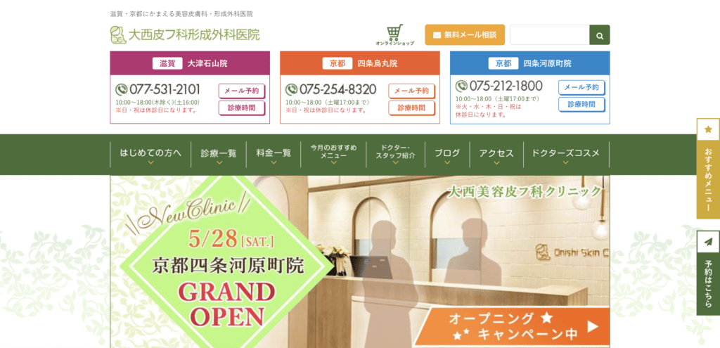 大西皮フ科形成外科医院 滋賀大津石山院のメニュー
