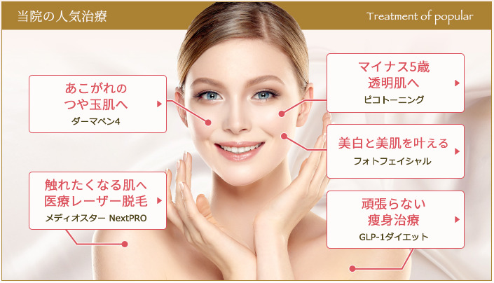 シミの現れ方には個人差があるため、医師が一人ひとりの症状に合わせて複合的な治療を行ってくれるのが人気のポイントです。